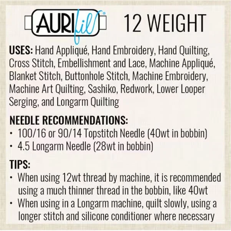 Aurifil's heaviest weight thread, ideal for hand quilting, embroidery, and other projects where a bolder, more textured stitch is desired.