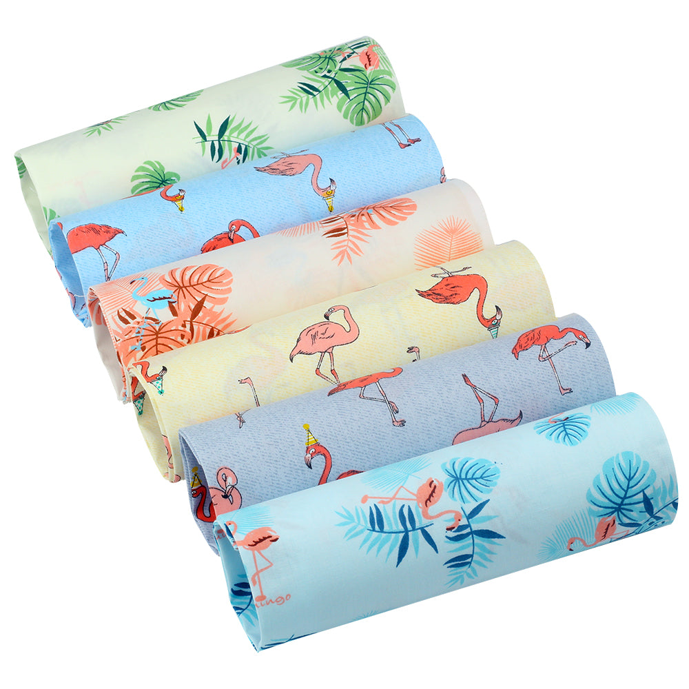 🌟 Composition: 100% Cotton. Width: 50cmx40 / 20"x15". Weight: 150gsm. Theme: Tropical Flamingo. Density: 133×72. Yarn Count: 40s×40s. Technics: Woven. Special Feature: Skin Friendly, Anti-Pill, Breathable