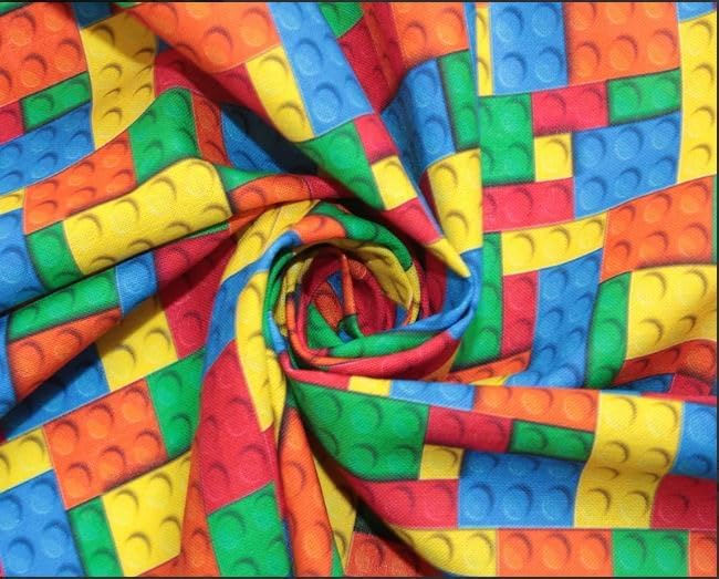 Ein digital bedruckter Baumwollstoff mit bunten Bausteinspielzeugen in 3 tollen Stilen.