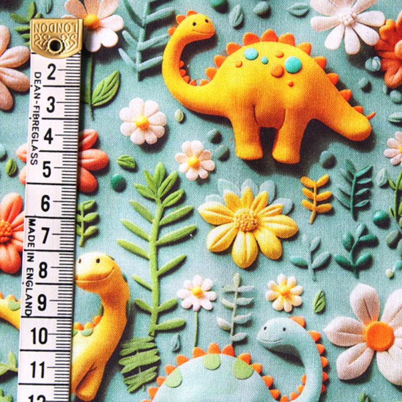🦕Le tissu présente un imprimé 3D captivant représentant d'adorables dinosaures au milieu de fleurs épanouies et de feuilles vertes luxuriantes. Chaque élément du motif est minutieusement reproduit pour créer une impression de profondeur et d'émerveillement, idéale pour stimuler la créativité dans vos projets d'artisanat et de couture.