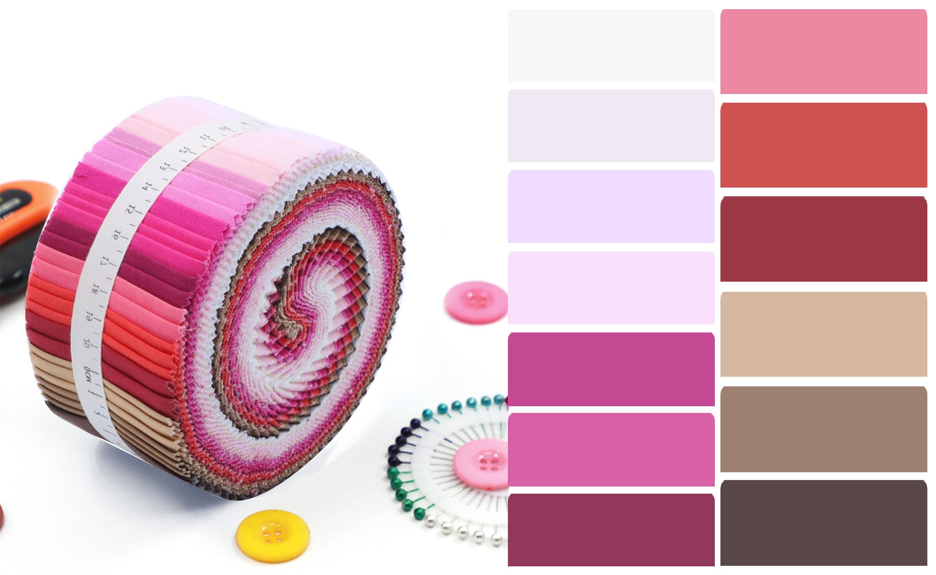 CraftsFabrics Pink Parade 100% Cotton 40Pcs/Roll Pre-Cut Jelly Rolls Strips 2.5"x 44" Wide Ideal for Quilting, Scrapbooking, Sewing, Patchwork