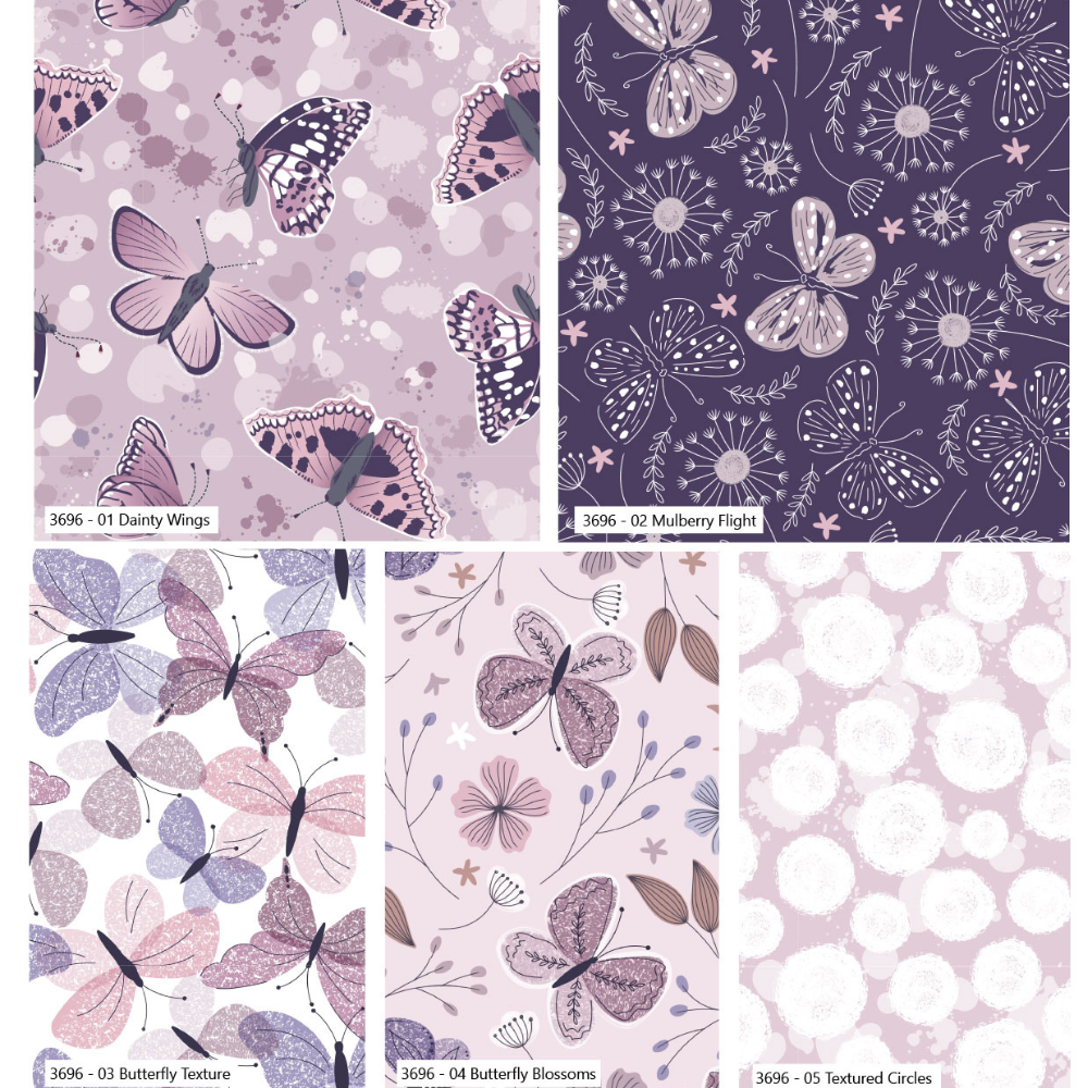 Add soft elegance and charm to your sewing projects with the CraftsFabrics Moonlit Flutter Cotton Fat Quarter Bundle. This beautifully coordinated fabric pack features delicate butterfly designs in soothing shades of pinks and purples, perfect for creating graceful and timeless handmade pieces.