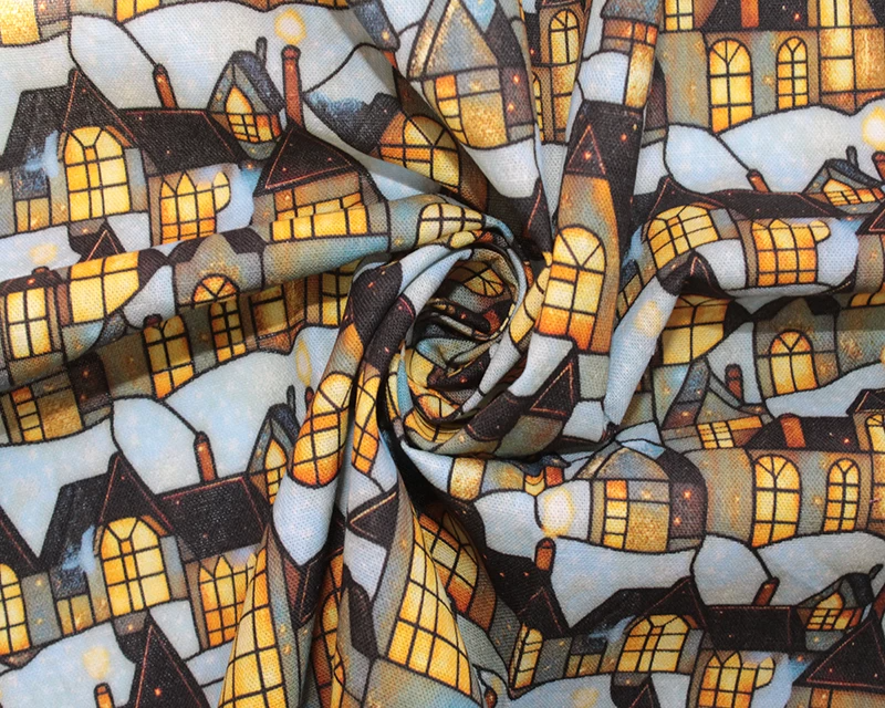 Little Johnny Digital Cotton 3D Stained Glass Homes 150cm Wide 100% Cotton Printed Fabric for Quilting, Sewing, Crafts, Dressmaking